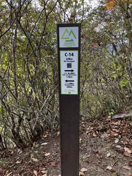 かなり長い急な坂ですから注意しましょう。登り返してピークに出れば立神山。眺望はありませんが三等三角点が設置されてます。