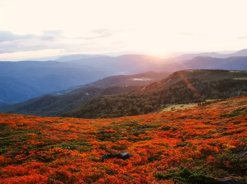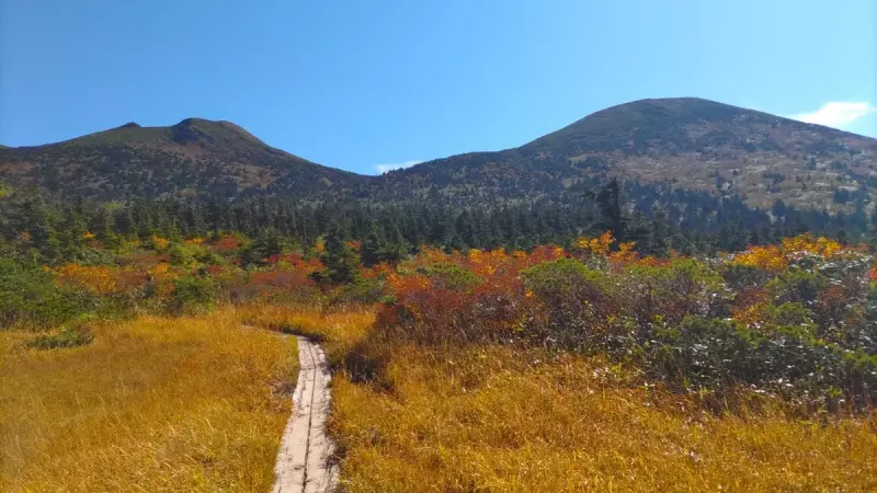 八幡平は9月下旬ごろから色づきを初め、10月には見頃を迎えます。山頂付近をダケカンバとヤマモミジが色づきを始め、カラフルに山を染める様子は圧巻です。見どころは湿原の草紅葉、木道を楽しみながら歩けます。