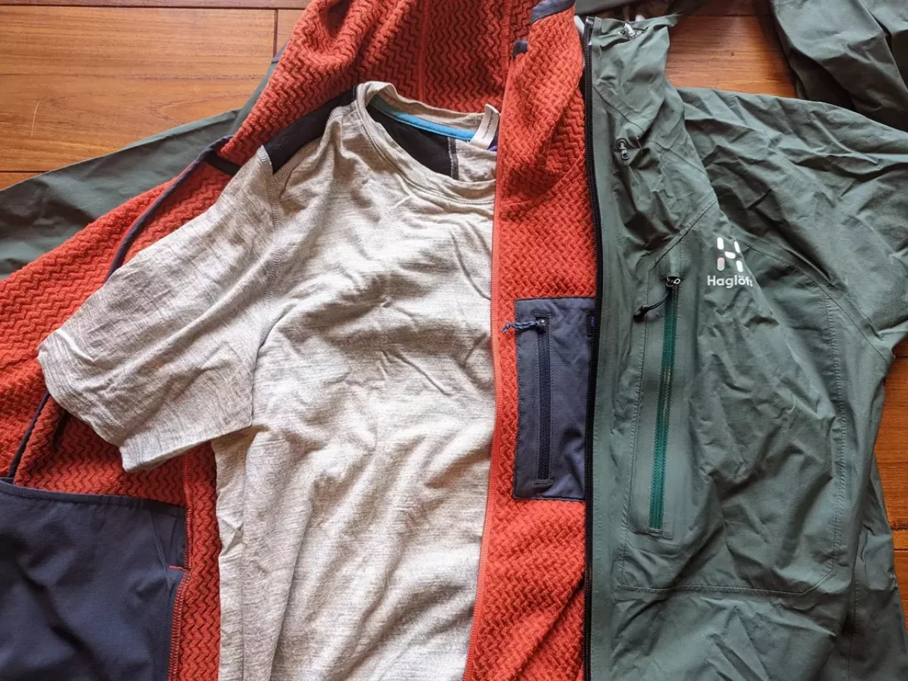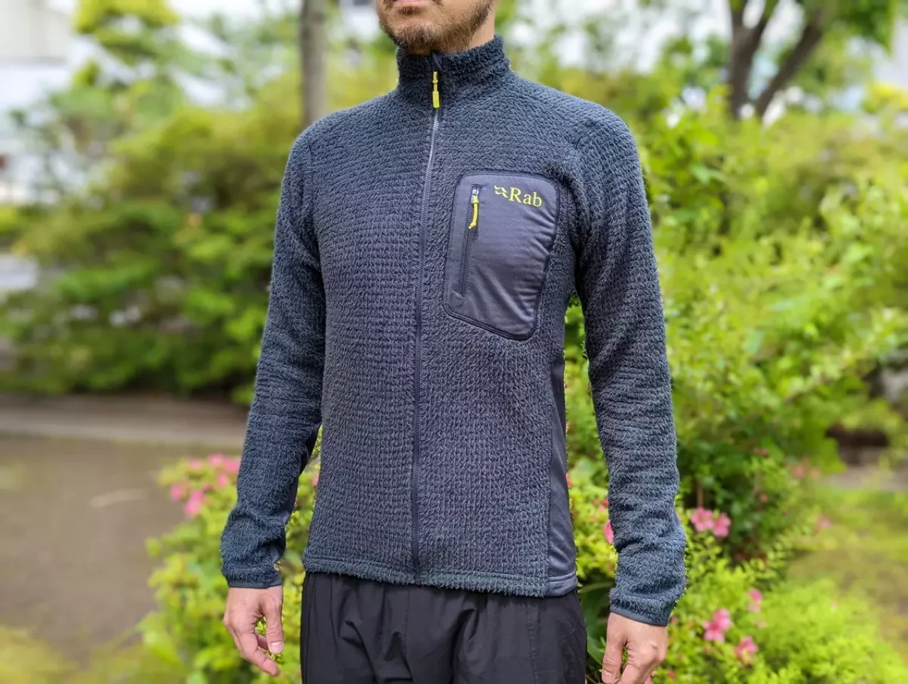 ノローナのリンゲンアルファ90ジャケットもRabのアルファフラッシュもミドルレイヤーとしての着用を前提としているのでフードがなくハンドウォーマーポケットもありません。胸にはジッパー付きのポケットが備わっており、ちょっとしたものを収納しておくのに活用しています。