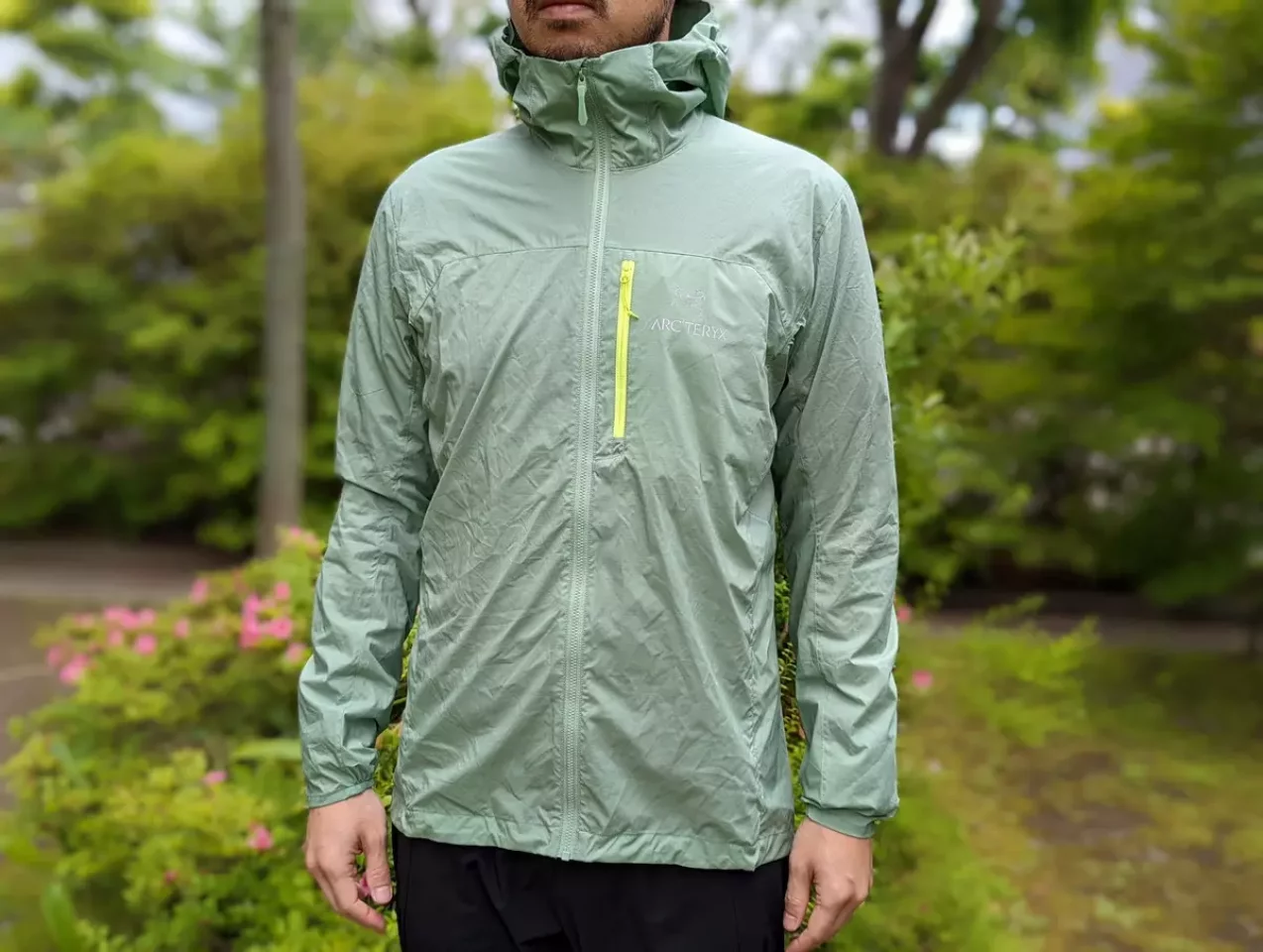 アウターにはウインドブレーカーとソフトシェルジャケットを活用しています。アルファダイレクトを使用したミドルレイヤーは強い風に当たると通気性に優れているので肌寒く感じることがあります。程よく風をしのぎたい時にはアークテリクスのスコーミッシュフーディを着用しています。
