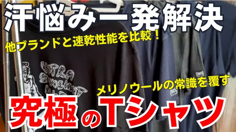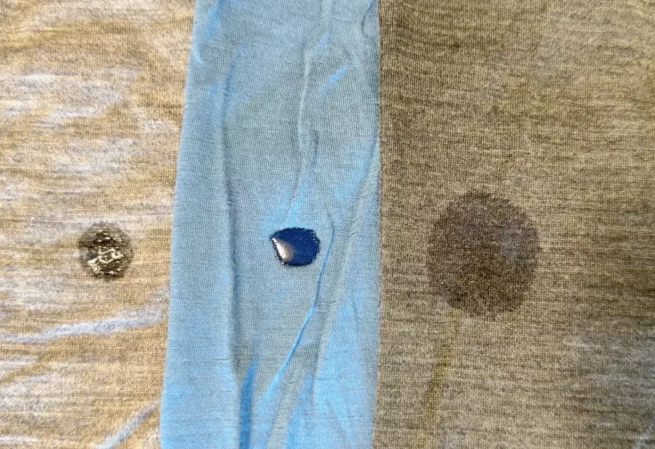 動画(7分14秒付近)はメリノウール素材で有名なポリエステル混紡のTシャツの拡散力の違いを紹介したものです。拡散力が低いと濡れたTシャツが肌にベタっとまとわりついて、そこから冷えが生じてしまいます。山旅の速乾メリノウールTシャツは勢いよく水が拡散していることがよくわかると思います。