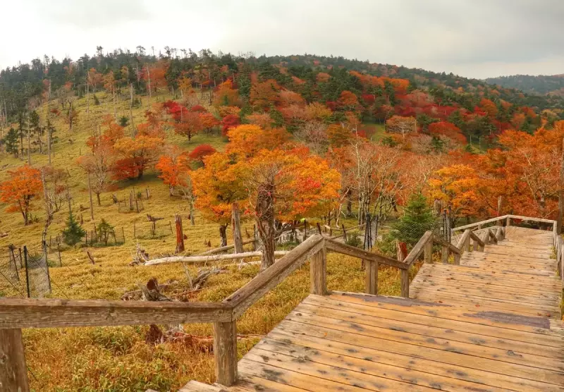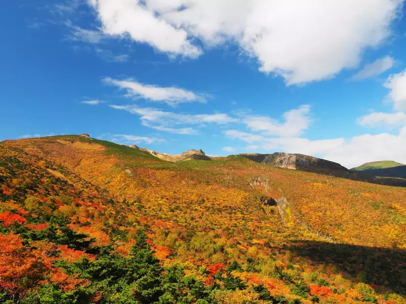 日本百名山にも名を連ねる八幡平は、どこまでも続く紅葉の絨毯が見どころです。広い高原の中に小さなピークが重なり、無数の沼や湿原などの紅葉登山を楽しめます。