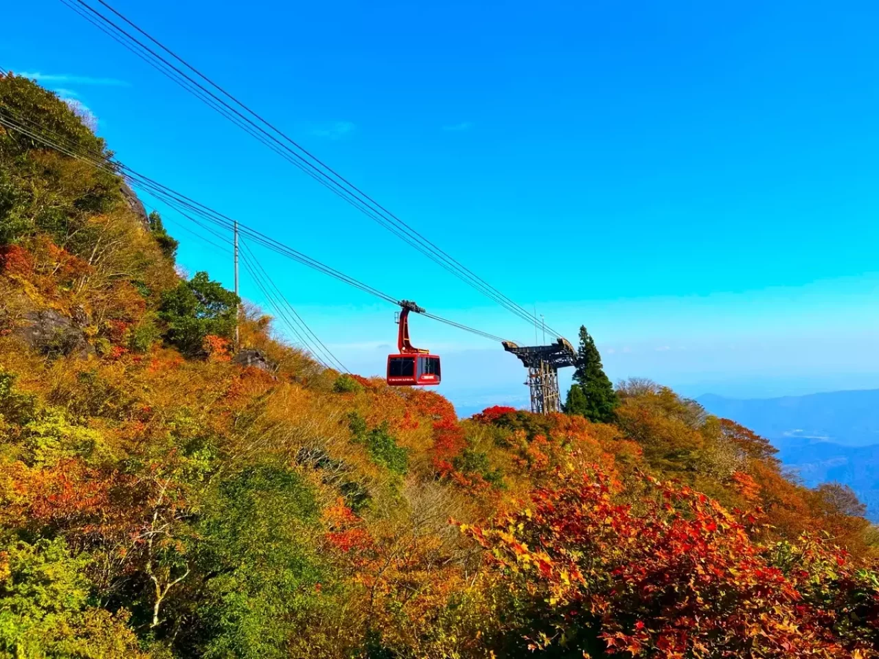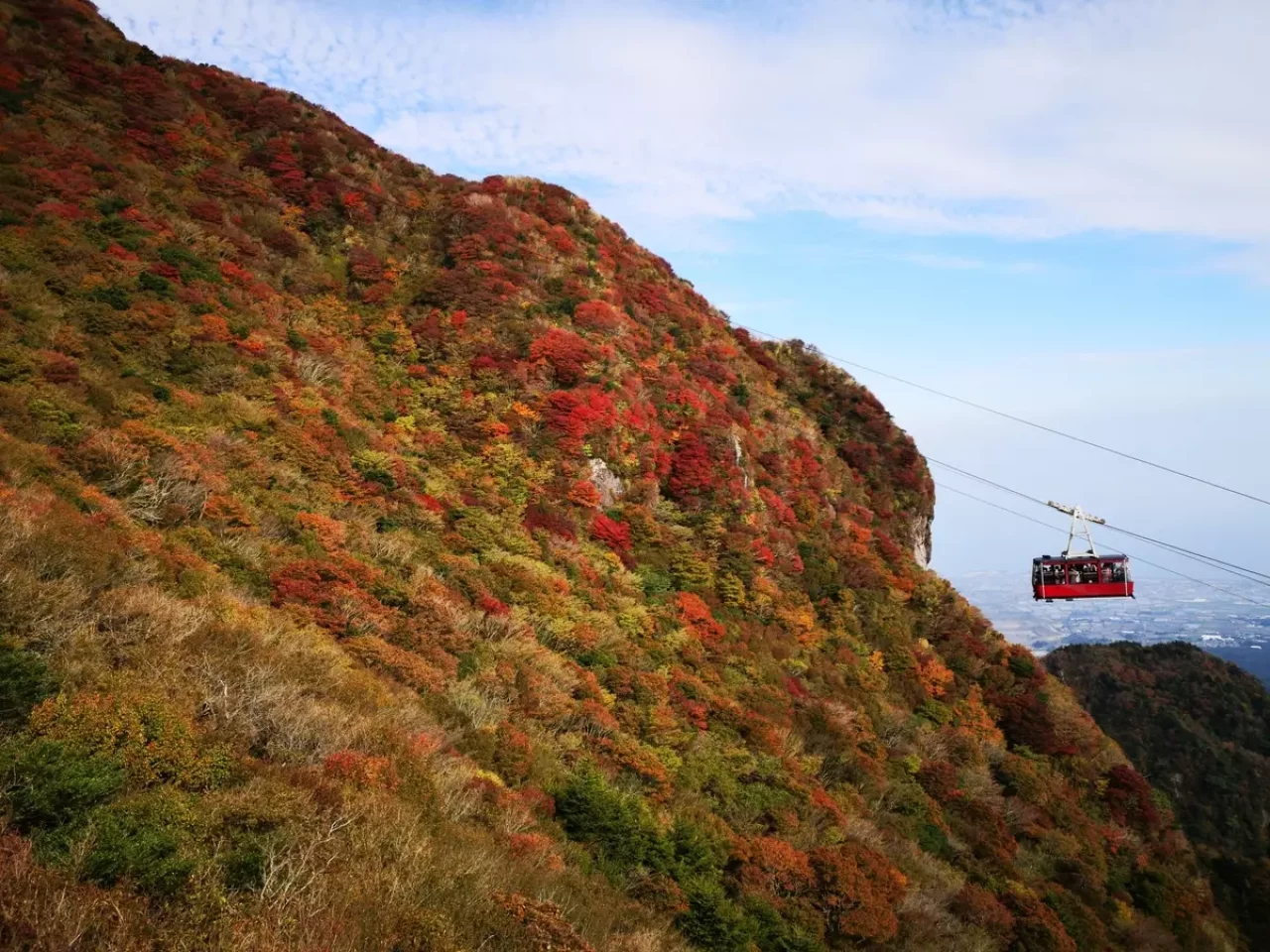 紅葉する植物が120種類以上あるともいわれている雲仙は、まさに紅葉の宝石箱。ロープウェイからのぞく仁田峠の紅葉は大迫力で、感動必至です。
