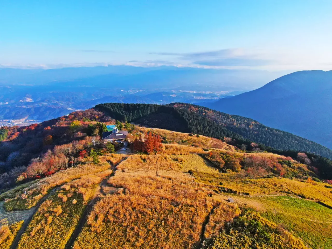 9月下旬~10月中旬にかけては紅葉に先駆けて、山頂付近の黄金ススキが楽しめますよ。