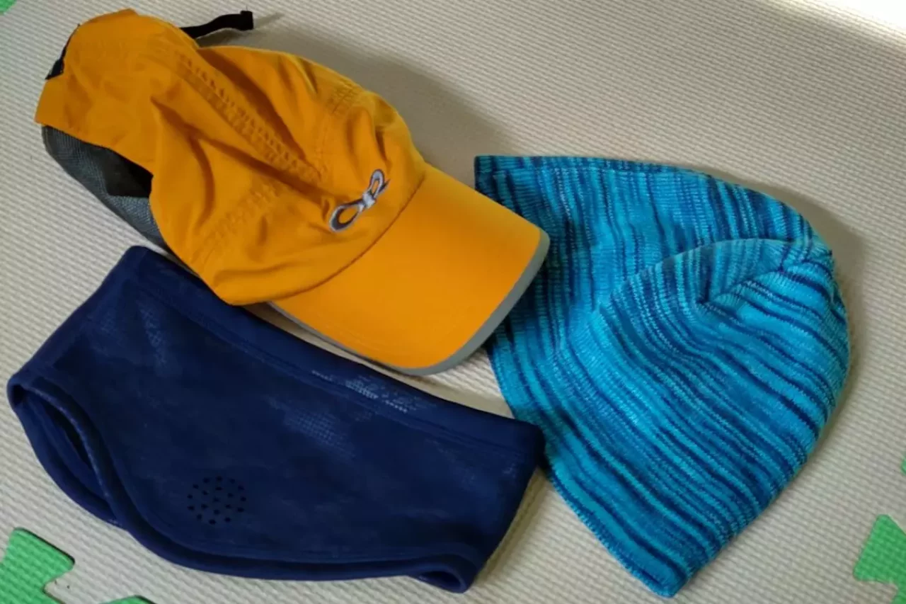 冬の低山登山で軽視されがちなのが、首から上の寒さ対策です。首はアウターレイヤーの襟で対応できますが、冷えやすい耳にはイヤーウォーマーが必要です。寒さによっては冬用のニット帽が必要ですが、一般的な冬の低山登山なら登りのときに頭が蒸れてしまうでしょう。帽子は春〜秋用のキャップやハットで十分です。