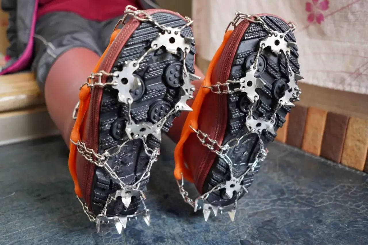 軽アイゼンやチェーンスパイクは、積雪や凍結している登山道での滑るリスクを軽減してくれます。滑るだけではなく滑落という最悪のケースも考えられるので、冬の低山登山には必要不可欠なギアと言えます。