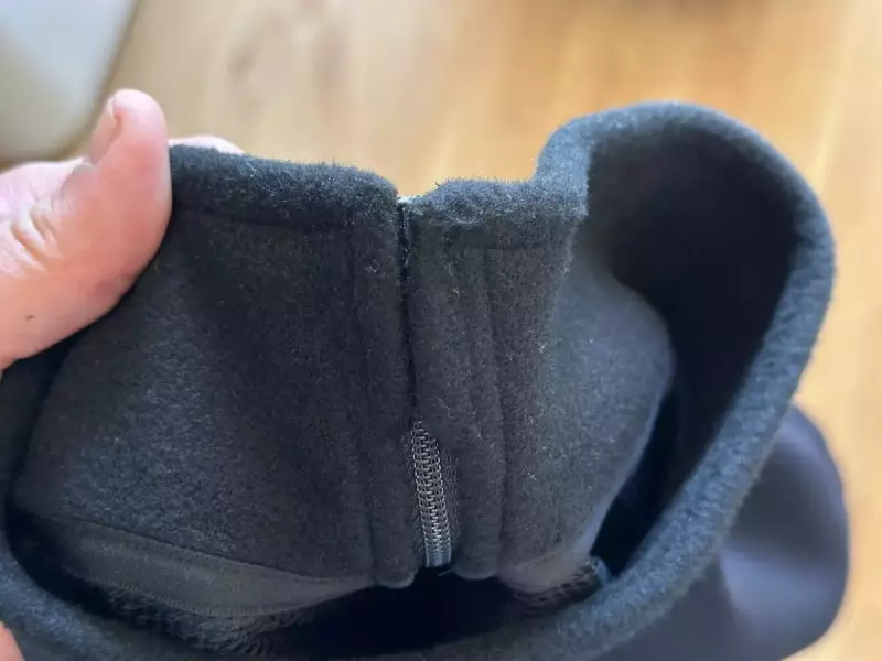 またチンガードも備わっています。これはファスナーの金具が顎や口元、喉部分に直接触れず、不快感を軽減してくれるもので、内側に目立たないような形でついています。