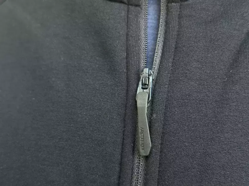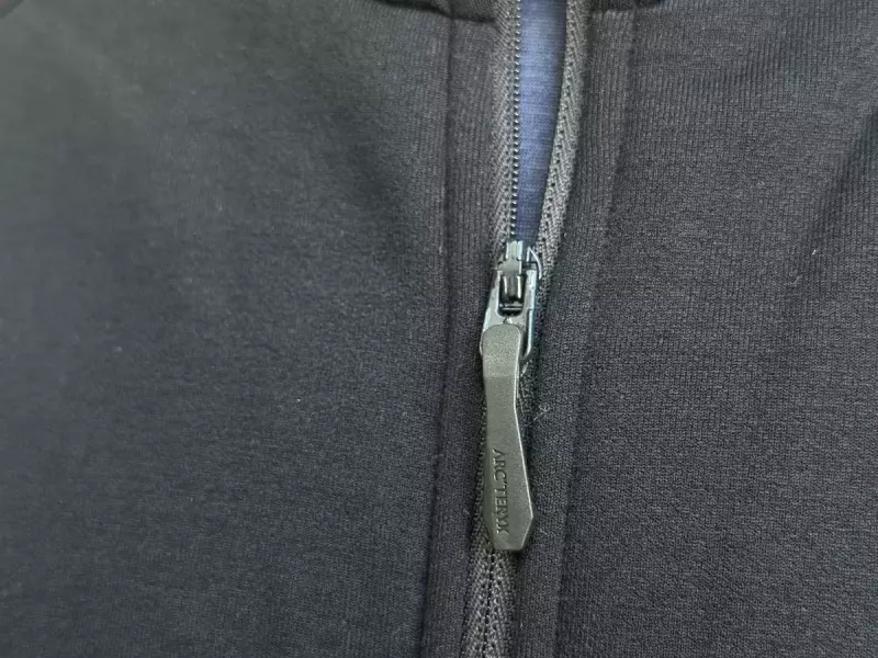 フロントジッパーにはNoSlipZipが使われています。このジッパーは例えば首元をちょっとだけ開けていたのに、いつのまにか胸元まで開いているといったようなことがない特徴があります。