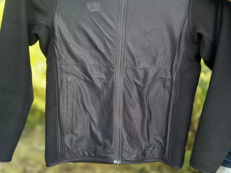 内側は柔らかく起毛していて暖かく気持ちの良い着心地です。風が当たって寒くならないようにお腹から胸の部分にはメッシュ素材が貼られています。