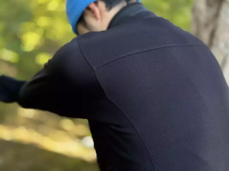 パターンには立体構造が採用されています。これによって手を上げたりかがむなどの動作がしやすくなっています。ザックを背負ったときに縫製部分が肩に当たって違和感を感じないデザインです。