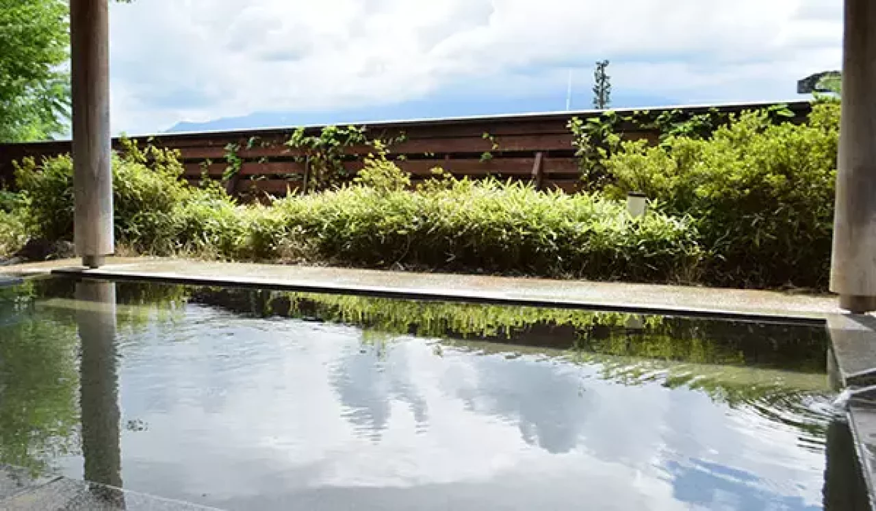 登山口から車で15分ほどの場所にある日帰り温泉施設です。ナトリウム炭酸水素源泉の肌がすべすべになる「美人の湯」は、地元の方からも大人気です。山間に位置しており露天風呂からは、四季折々の山の風景を楽しむことができます。