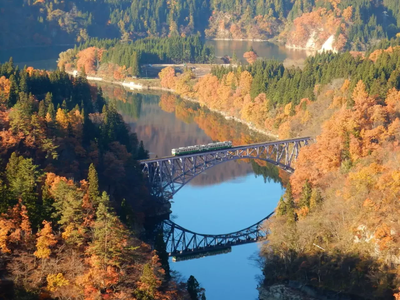 只見町から会津坂下町にかけて、只見川沿いに走るJRの只見線の車窓からは美しい風景を楽しむことができます。雑誌や新聞の調査でたびたび1位に選ばれる路線なのです。