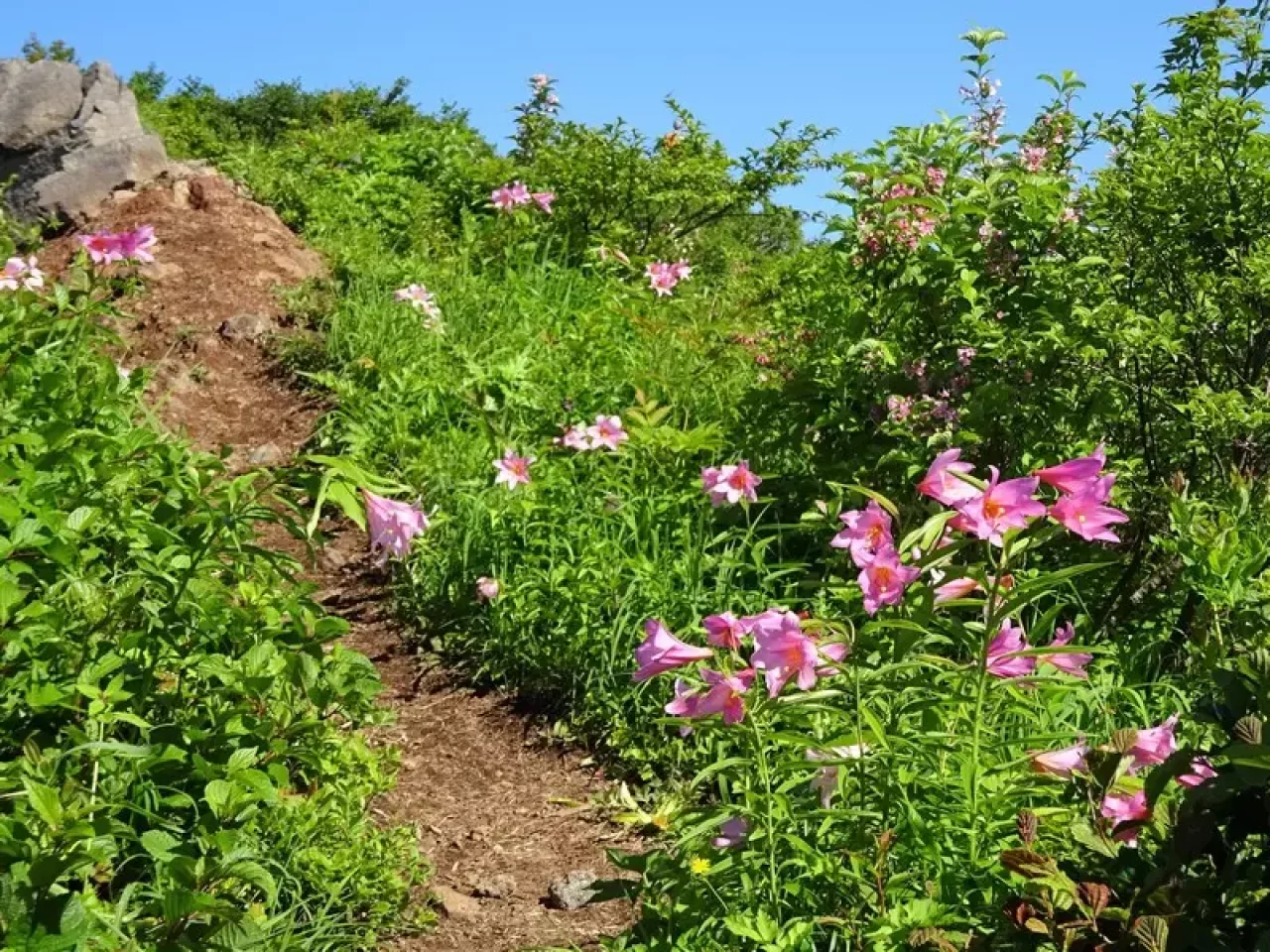 例年6月中旬から7月上旬には桜ゾネ、六十里(南岳~北岳)付近に多く群生しており、毎年多くのハイカーがヒメサユリを見ようと訪れるほど。