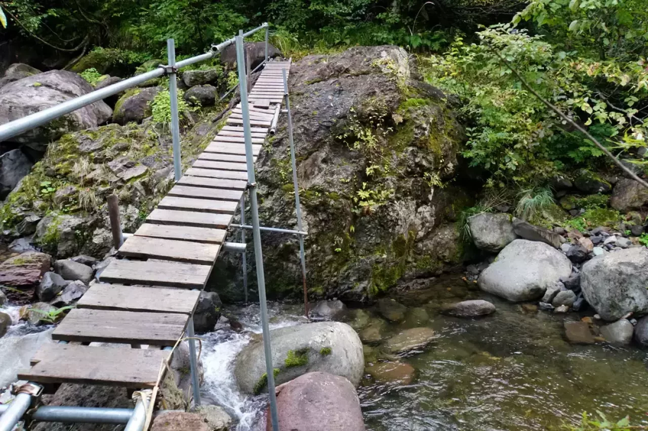 少しの間は沢沿いの平坦な道。その後、幽ノ倉沢にかかる橋を渡ります。このルートはブナ林がすばらしく、新緑や紅葉の時期には見応えがあります。