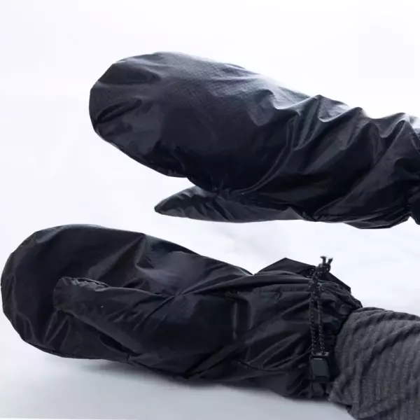 山旅防風ミトンの中に冷えた空気が入らないように素早くミトンの開口部分を締めることも重要です。山旅防風ミトンは、ミトンをしてからストレッチコードを引っ張るだけでグローブを絞める&緩めるを簡単に行うことができます。