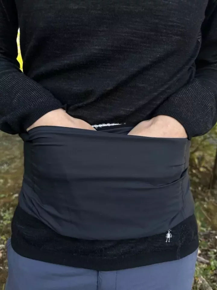 ベースレイヤーには汗の拡散力に優れた山旅の速乾メリのウールTシャツが快適です。寒くなればウィンドブレーカーを着用するのですが、特に温めたいのがお腹、いわゆる腸です。腸内環境を温めることで以下6つの効果を得ることができるので、秋冬の登山では腹巻を取り入れましょう!