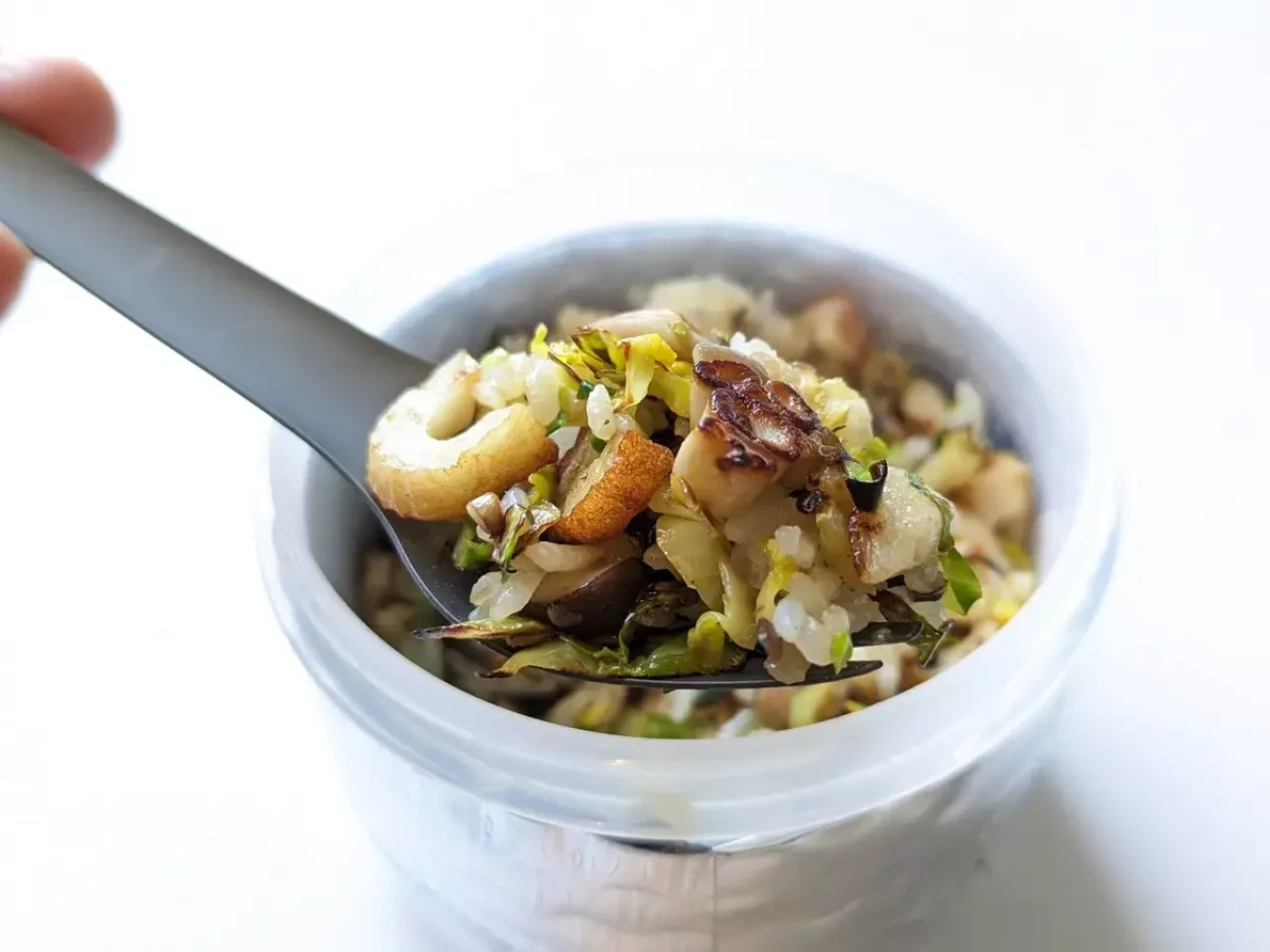 さらに便利なのはゴミが出ないこと、カップラーメンをジップロック®スクリューロックコジーに自分好みに味を調整することができる点です。僕の場合は唐辛子とごま油を追加しています。お湯を入れた時に油は冷めづらいので、最後までカップラーメンを熱々の状態で食べることができます。
