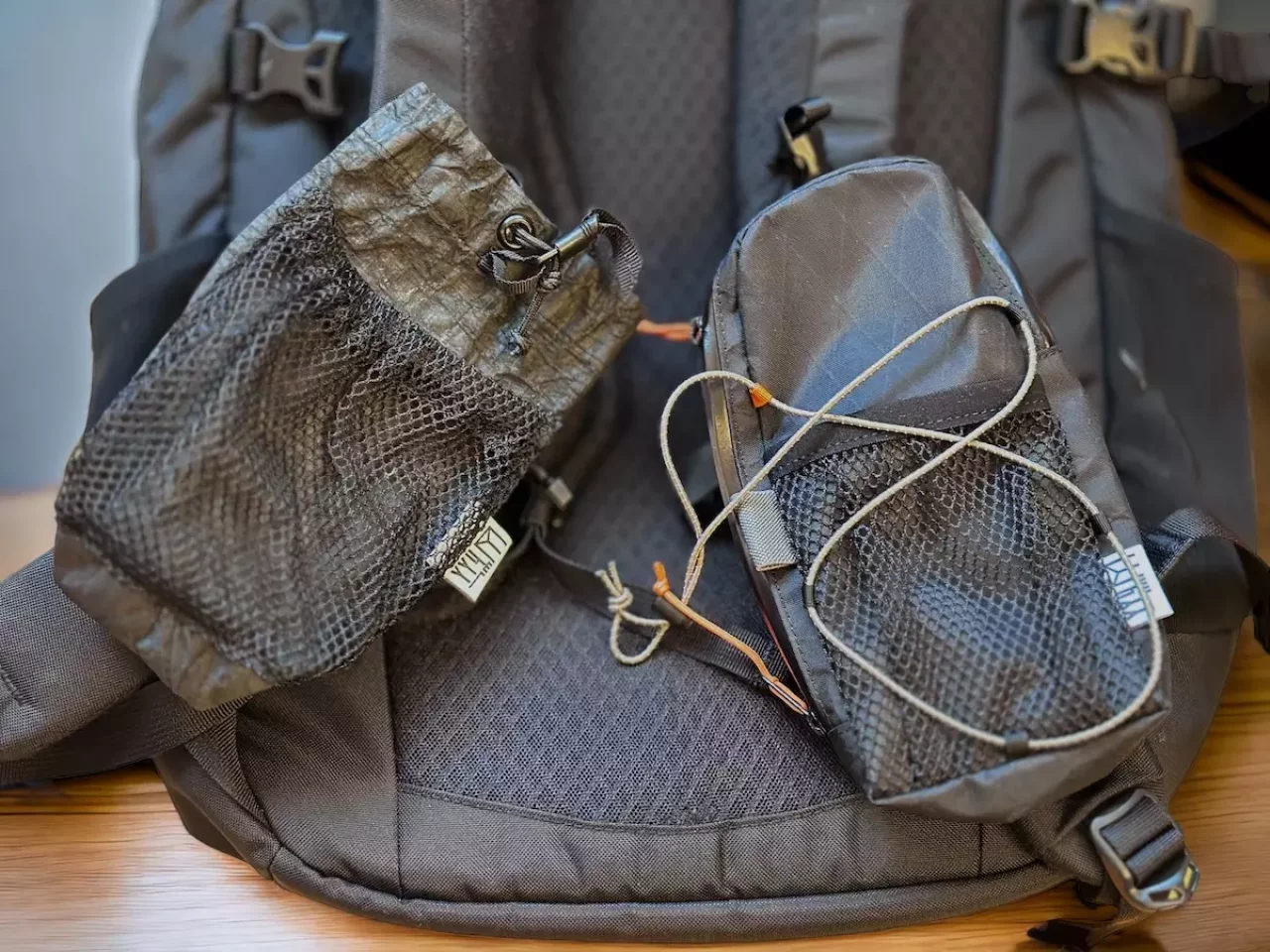 雪が降るようになると空気が乾燥し、さらには雪による照り返しで紫外線が多くなります。そのため日焼け止め、リップクリーム、目薬、サングラスがとても重要な装備になります。これらのアイテムは登山中頻繁に使用することから、冒頭で紹介したスマホポーチやボトルホルダーの外に着いたメッシュポケットに収納しておくことで、取り出しを楽にします。