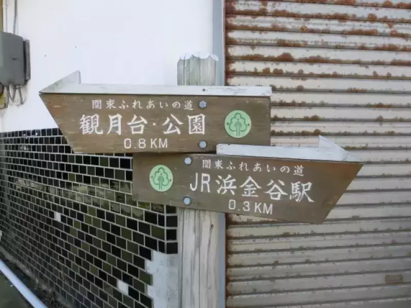 JR浜金谷駅から国道手前を左に歩いていきます。「観月台・公園」の看板に沿って進み、電車のガードをくぐると間もなく登山口が現れます。