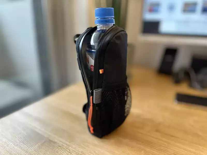 外側のメッシュポケットはマチが付いているので行動食を入れることもできるし、日焼け止めはリップクリームなどを入れておくこともできます。またL字に開閉してスマホの出し入れが楽なだけでなく、600mlサイズのペットボトルも無理なく収納することができます。このアイテムは登山だけでなくスキーでも使うし、3シーズンにおける縦走登山などでもなくてはならないアイテムです。