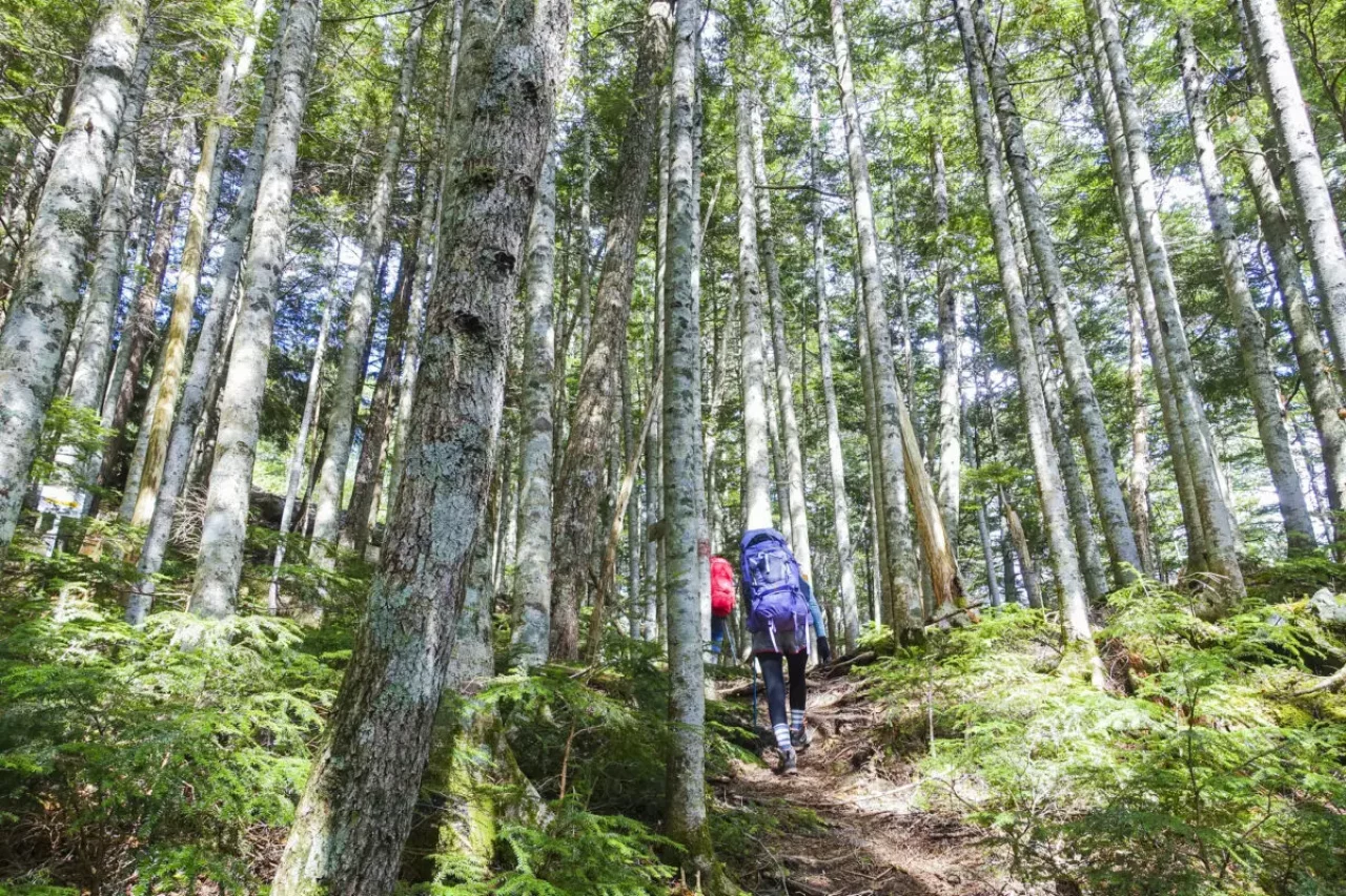足元には、緑の苔に美しく覆われた切り株が見られるでしょう。見晴台や駒鳥池で休憩をしつつ、樹林帯の緑の景色の中を進んでいき、千枚小屋に到着です。