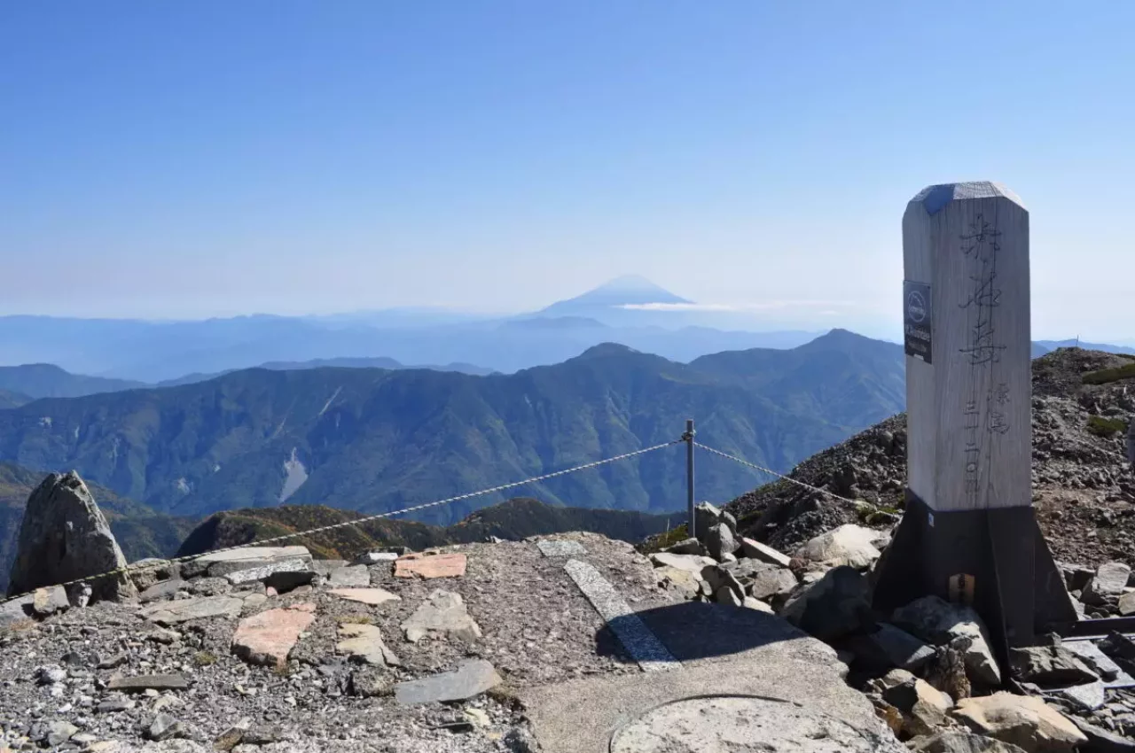 前岳の山頂からも、南アルプスの山々を眺められ、晴れていれば富士山を真正面に収められます。