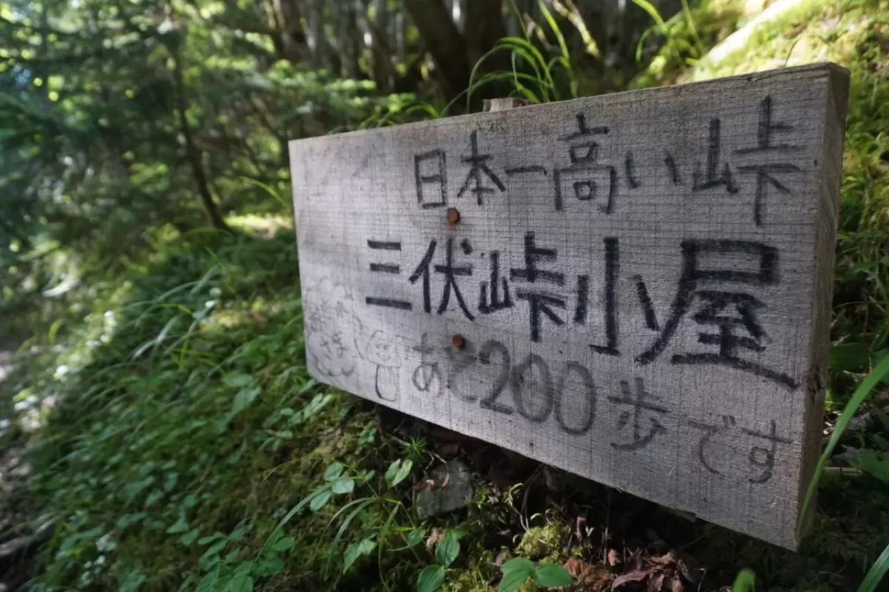 鳥倉登山口からスタートです。途中で手書きの「三伏峠小屋まであと200歩」の看板が置いてあります。