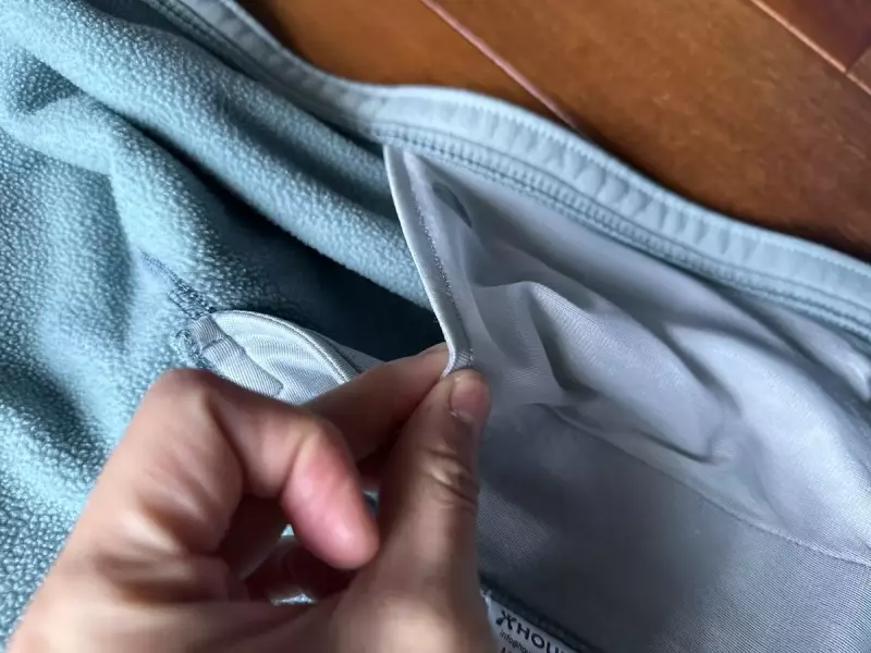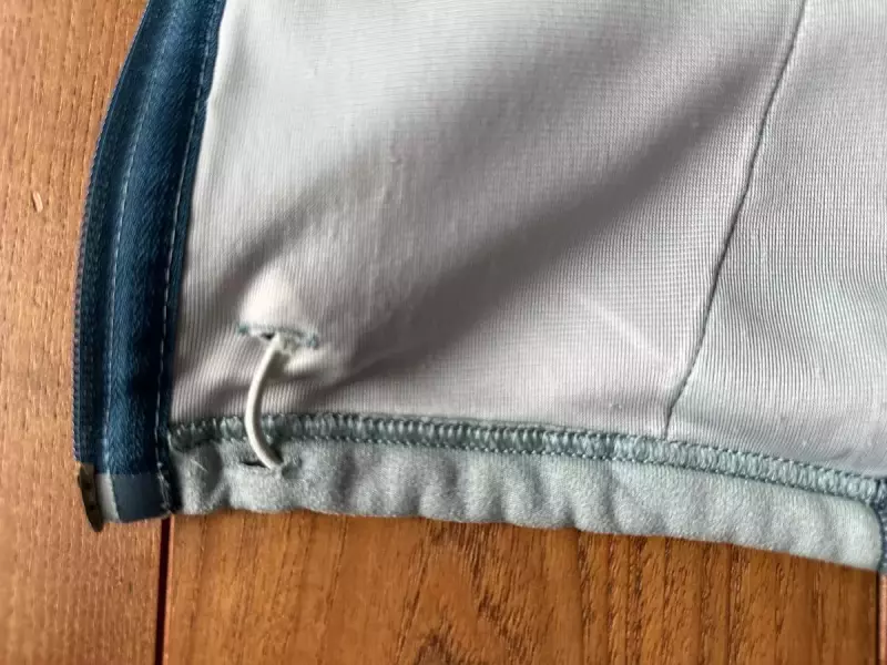 さらに裾から入り込む冷気をシャットアウトするドローコードがついています。このドローコードはポケットの内側で調整が可能です。