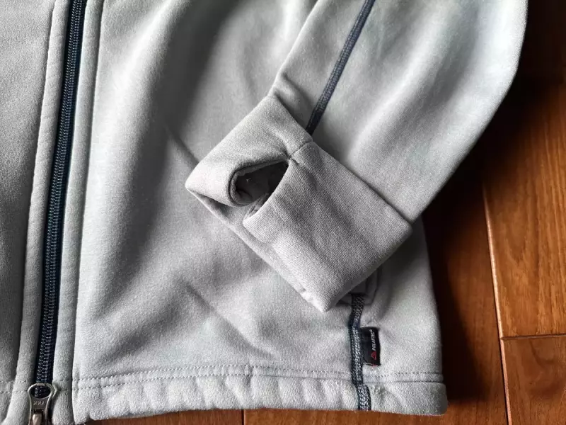 着用していて他のフリースと異なってとても良いと思うのは、1つはダブルジッパーによる体温調整、もう1つはサムホール付きで袖口からの冷気を遮断ししっかりと手首を温めてくれる機能です。寒くなればなるほどこの2つの機能はとても重宝します。