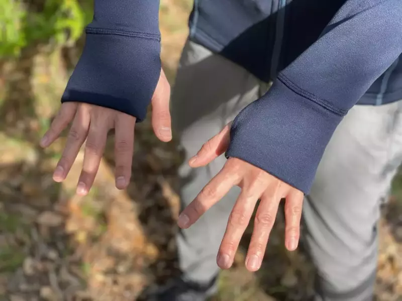 袖はサムホール付きで袖口から冷気の侵入を防ぐとともに、しっかりと手首を温めるデザインが採用されています。袖口部分の素材は二重になっているので非常に暖かく寒い季節になるとデスクワーク時に手を温めるのに役立ちます。