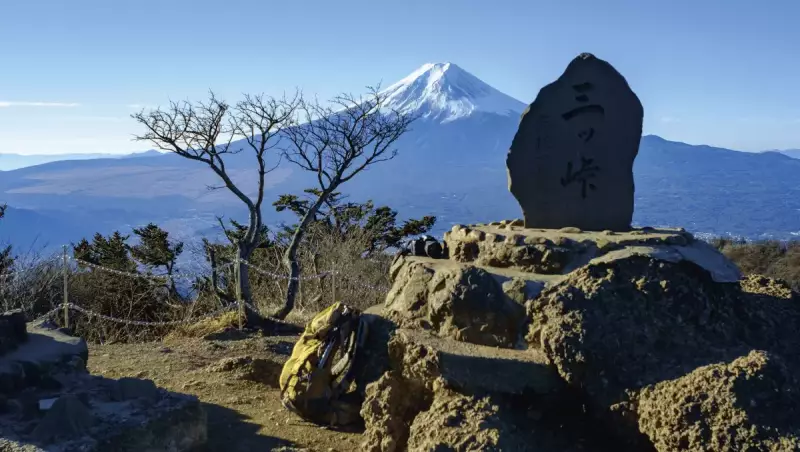 急登の後にたどり着いた山頂は広々としており、目の前に大きく富士山がそびえています。箱根で人気の金時山や明神ヶ岳、大涌谷や小田原の街並み、さらには江の島まで見渡せ、心地よい展望に酔いしれます。