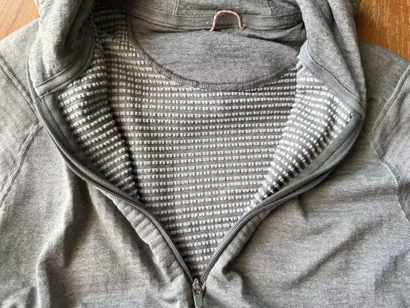 ベースレイヤーとして考えられたデザインなのでジッパー部分が肌に当たらないように内側にはジッパーと肌の間に素材が来るようにデザインされています。