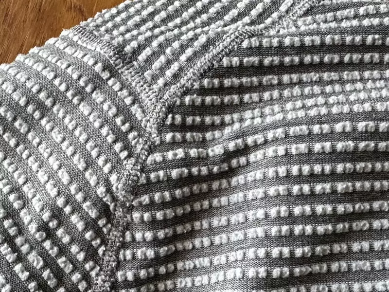1番目にあげた凹凸構造の面積や形状は様々で今回紹介するパタゴニアのキャプリーン・サーマルウェイトは最も薄く俯瞰してみるとストライプで、拡大してみるとグリッド構造をなしています。秋冬のトレイルランニングや、厳冬期におけるバックカントリースキーや雪山登山で使用する快適なベースレイヤーです。
