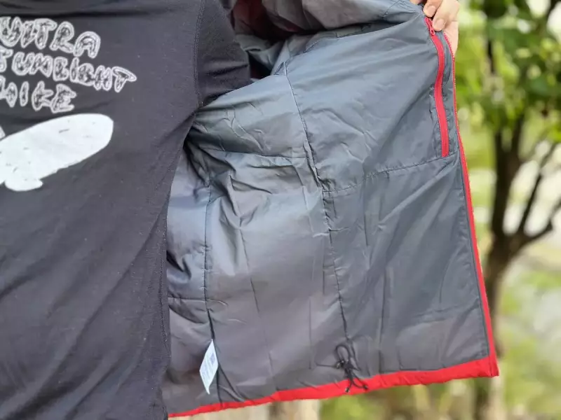 ポケットは全部で3箇所備わっていてハンドウォーマーポケットはジッパー付きで手の甲に当たる部分にはフリース素材が採用されています。