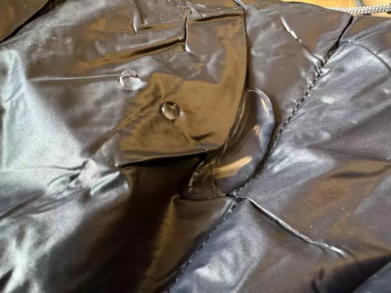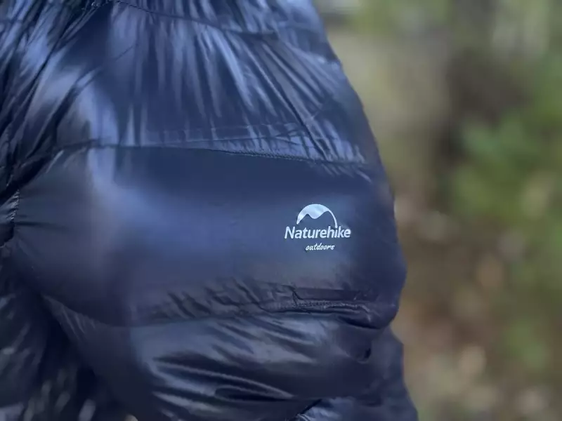 使用されているシェル素材は20デニールの張りのある素材で、耐久撥水加工によってしっかりと水を弾いてくれます。という素材は軽量性に特化したダウンジャケットに使用されている7〜12デニールと比較すると若干厚みがある素材に思えますが、実際に寒い場所で履いてみると、防風性が高く、またダウン抜けが少ないのでメリットと感じることの方が多いです。