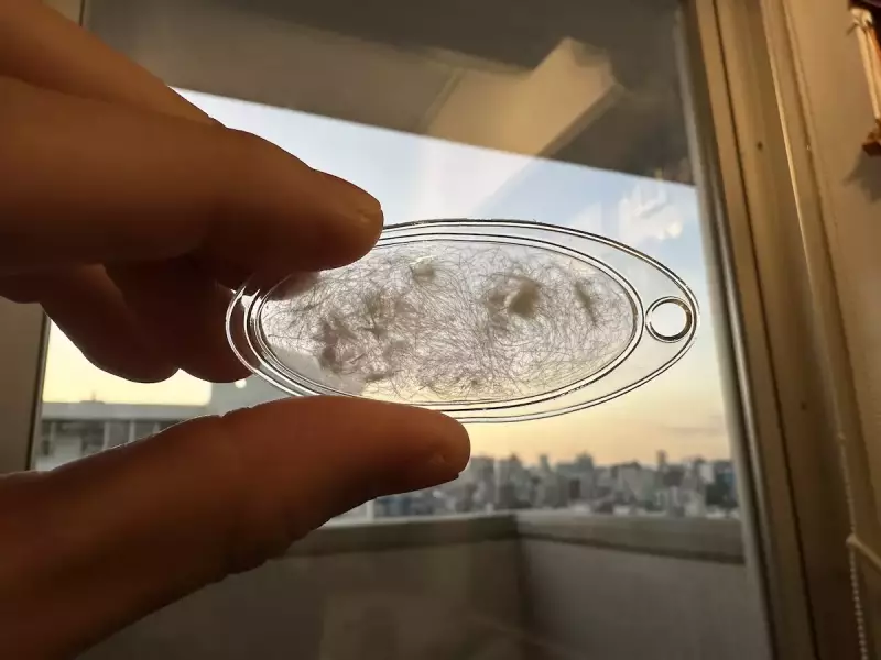 購入するとどのようなダウンが入っているかがわかるように、プラスチックの透明パックの中に封入されているダウンが入っており、これが製品タグと一緒に取り付けられて送られてきます。
