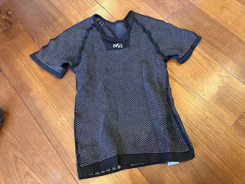 またミレーのドライナメッシュを着用しています。ベースレイヤーの下にこのメッシュアンダーウェアを着用することで肌についた汗を素早く吸収してベースレイヤーに移してくれます。