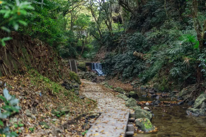 小学生くらいの子供と一緒に行くなら、川と山と海の魅力が楽しめる前田橋コースがおすすめです。前田橋バス停からスタートし、川の清流沿いを歩く遊歩道に入ります。川に飛び石があるのでアスレチックのように楽しめます。