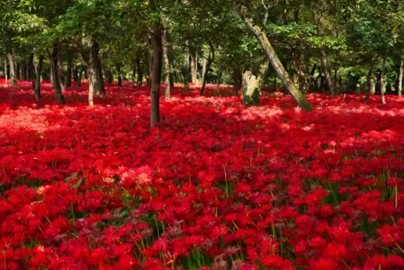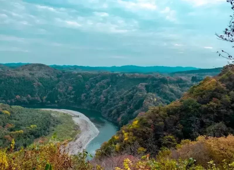 巾着田に立ち寄ってみましょう。のどかな里と河原の風景に癒されます。秋に咲く曼殊沙華の群生は圧巻ですが、咲いていない時期でも気持ちのいい散策が楽しめます。