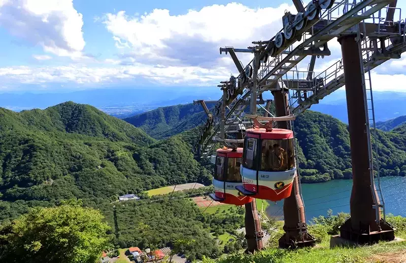 - ロープウェイやケーブルカーなど非日常的な乗り物がある