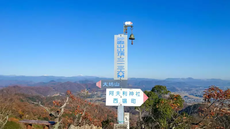 さらにもう一登りすると日和田山山頂に到着。関東平野を一望する眺めは素晴らしく、遠く筑波山まで見えます。下山は女坂を下っていきましょう。