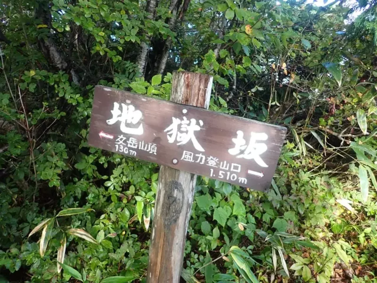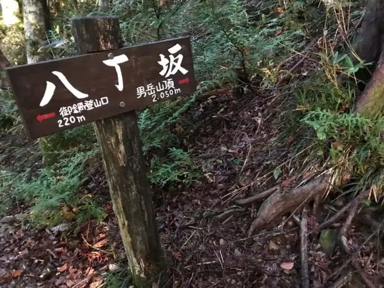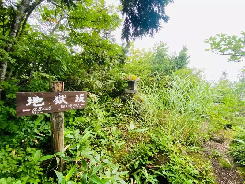 女岳坂から斜面がきつくなり地獄坂へと続きます。名前の通り夏の暑い時期にはかなり体力を消耗するため対策は必須です。