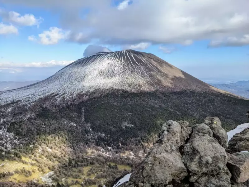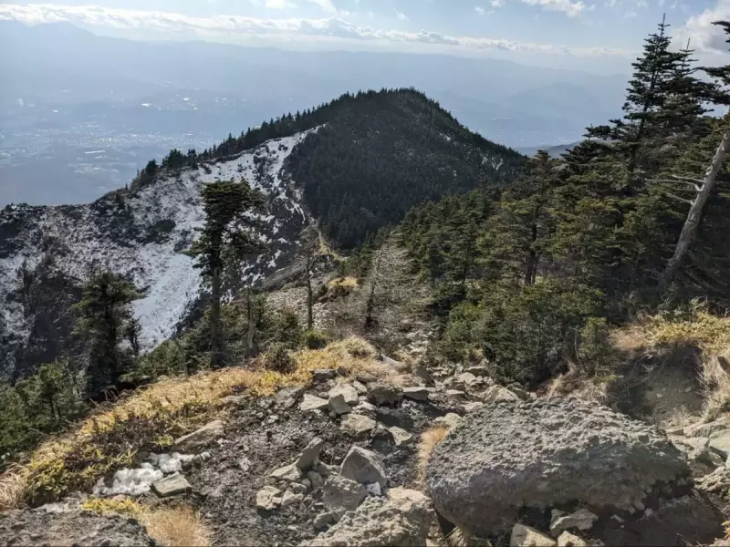 - 鋸岳や仙人岳といった外輪山の山々が見える