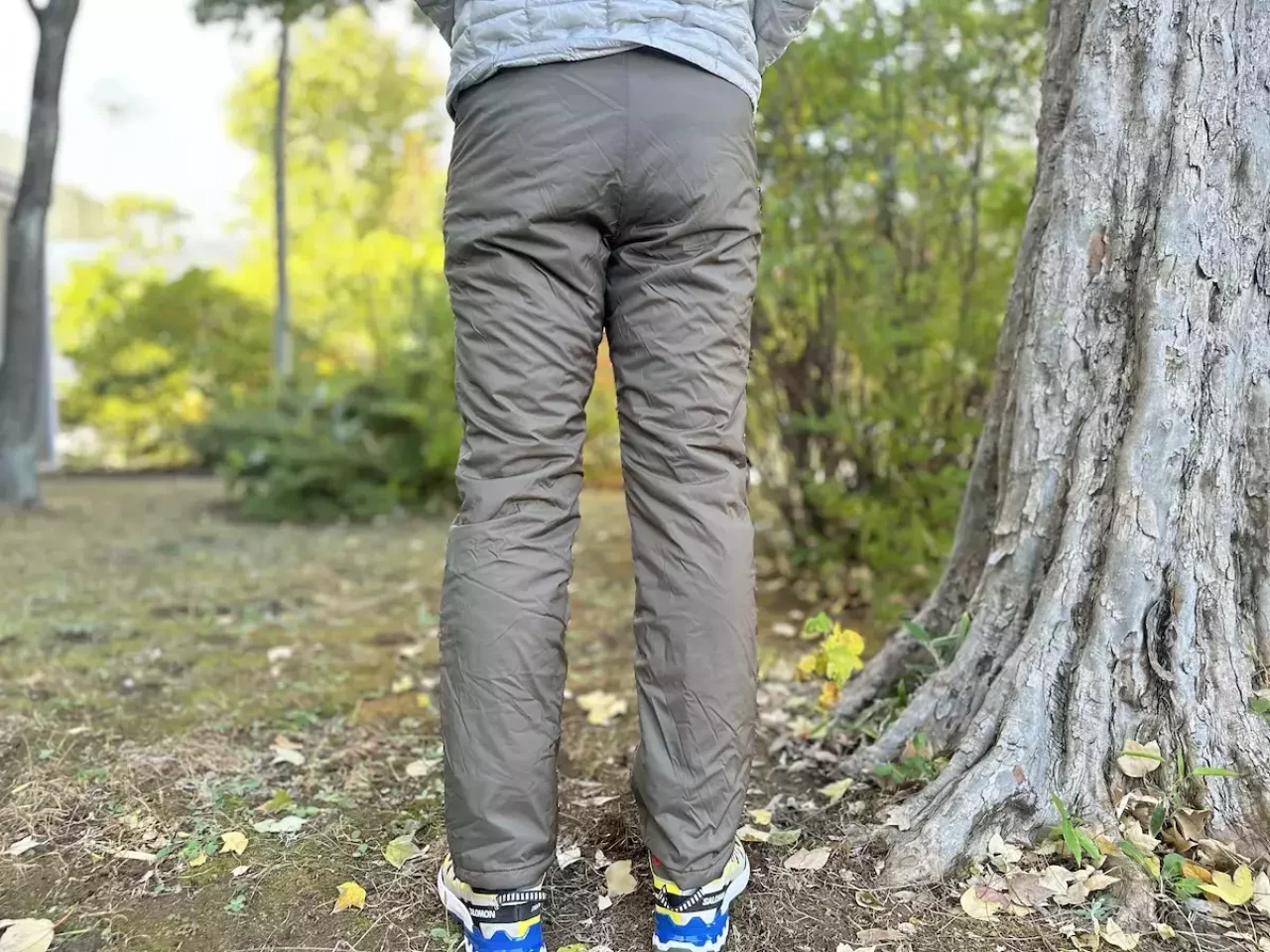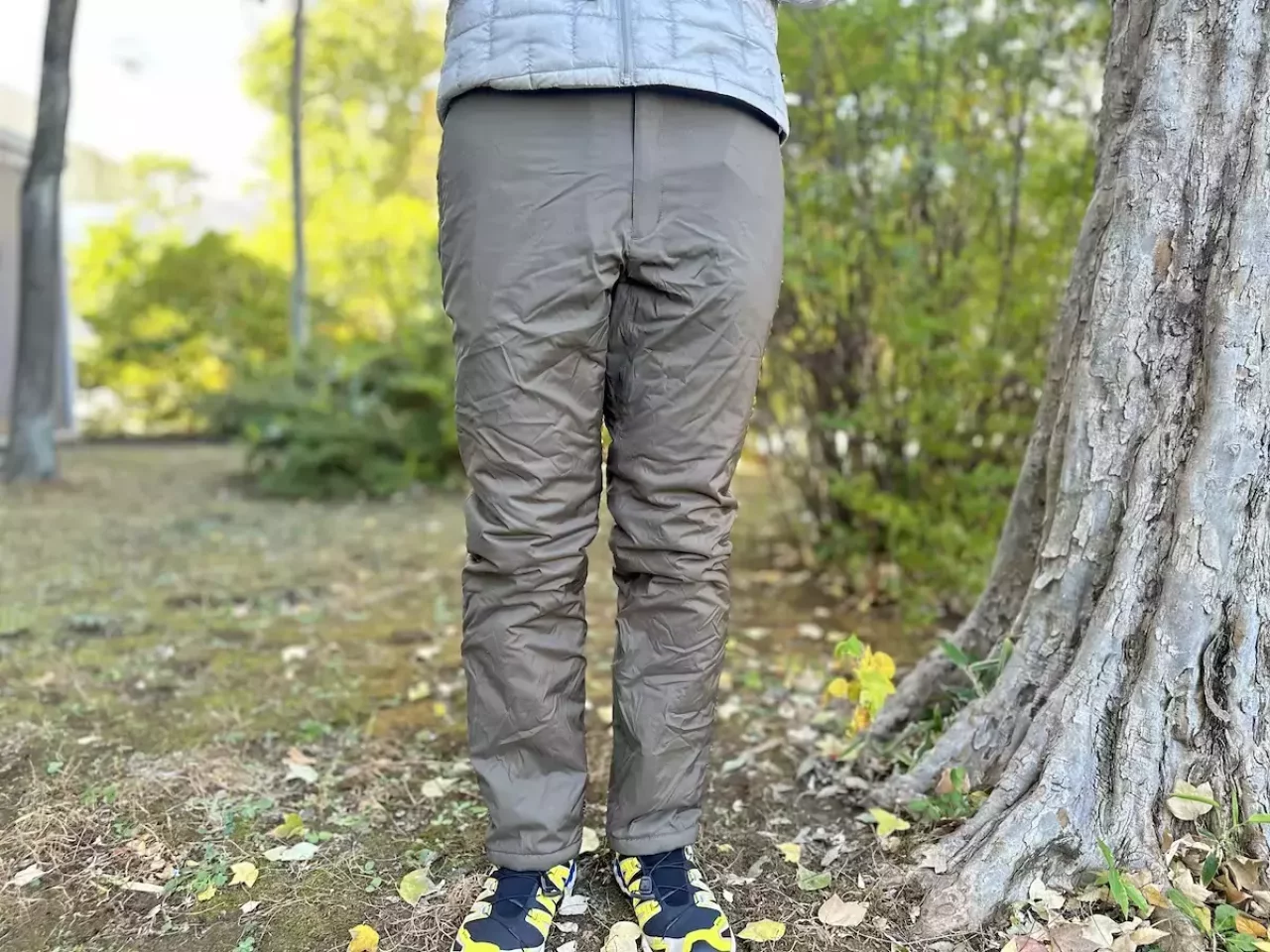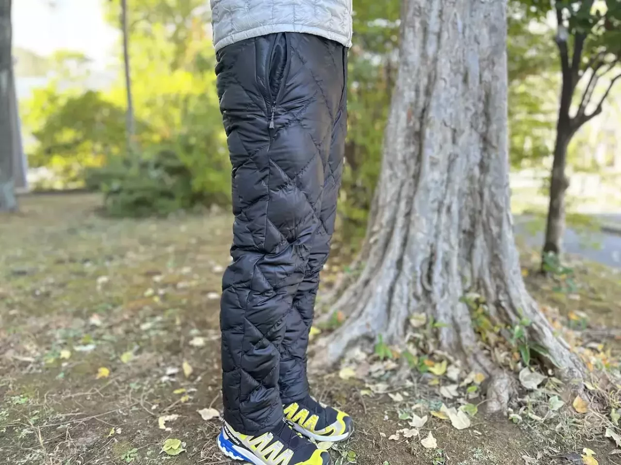 このようにスペックを比べてみるとシェル素材はU.L.サーマラップパンツが5デニール薄く、それぞれ中綿の違いもあり約20g、U.L.サーマラップパンツが軽量です。