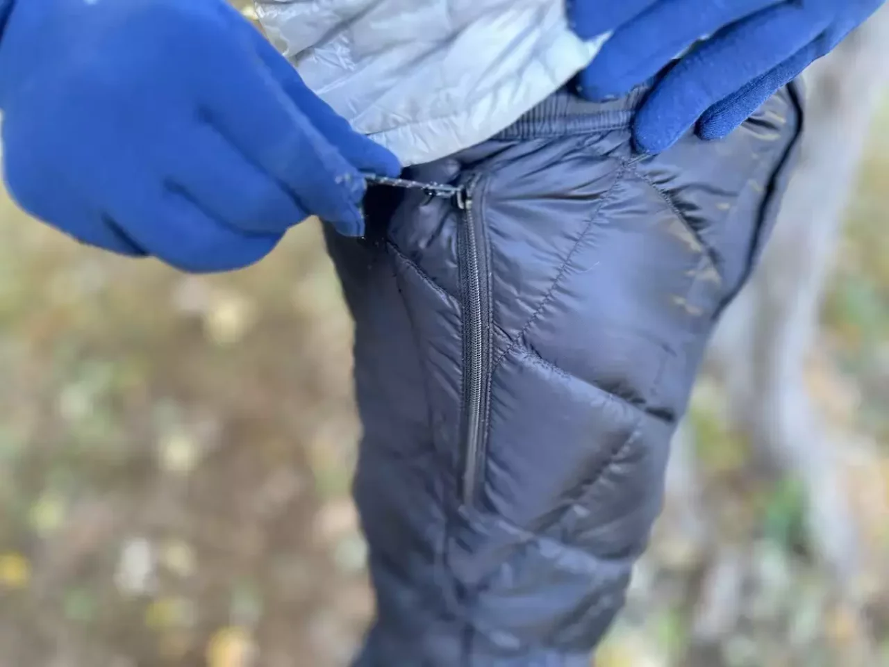 モンベルのインシュレーションパンツに共通したデザインの一つにポケットがあります。スペリオダウンパンツにもU.L.サーマラップパンツにもジッパー付きのハンドウォーマーポケットが備わっています。