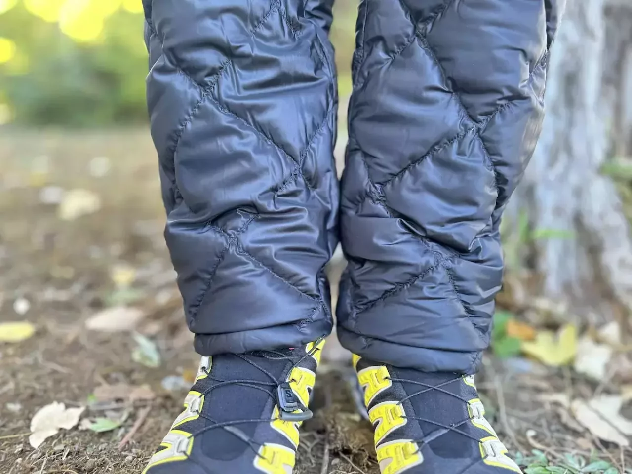 スペリオダウンパンツは中綿素材がダウンなのでU.L.サーマラップパンツの中綿「ストレッチエクセロフト」と比べると濡れに弱い特徴があります。濡れに弱いながらも重量に対しての保温力が優れているので休憩中に下半身をしっかり温めてくれます。