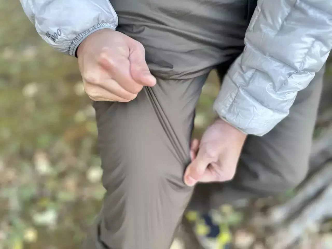 着用した状態で足を上げたり、屈んだりしても突っ張ることが少なく動きやすいので厳冬期における行動着としても活用できます。