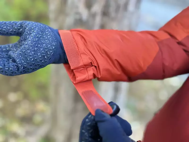 袖口はベルクロテープでフィット感を調整することができ、裾はポケットの中にドローコードの先端がついているのでこれを引っ張ることでフィット感を調整することができます。