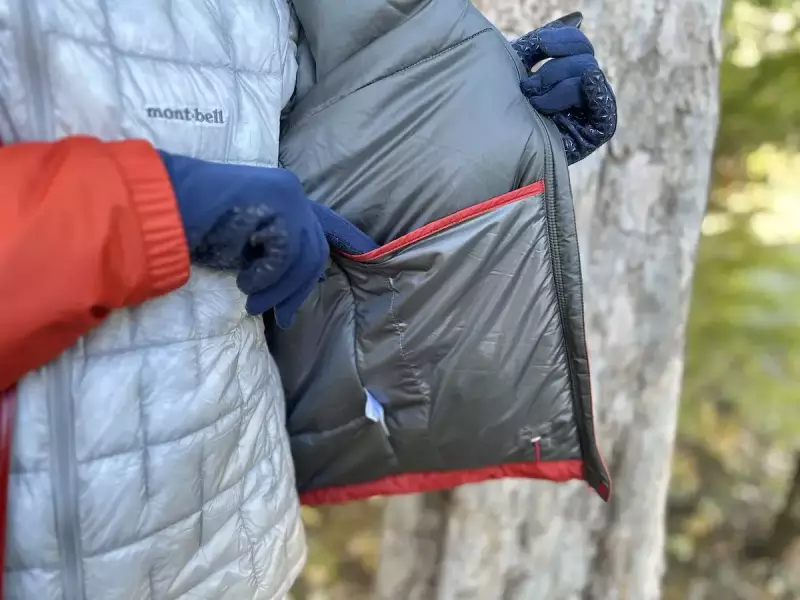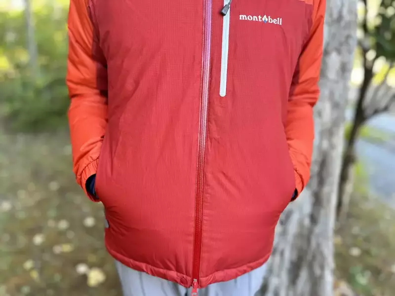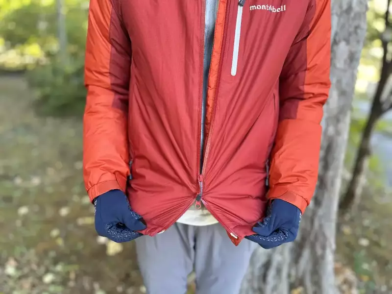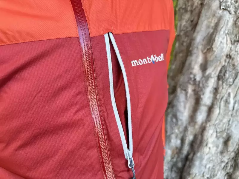 平均重量は524gで、素材はモンベルの防水透湿素材「ドライテック」に、表地は12デニールのバリスティックエアライト・ナイロンリップストップを使用し、裏地には20デニールのバリスティックナイロンタフタを使用しています。この裏地は静電気が生じづらいように加工が施されています。