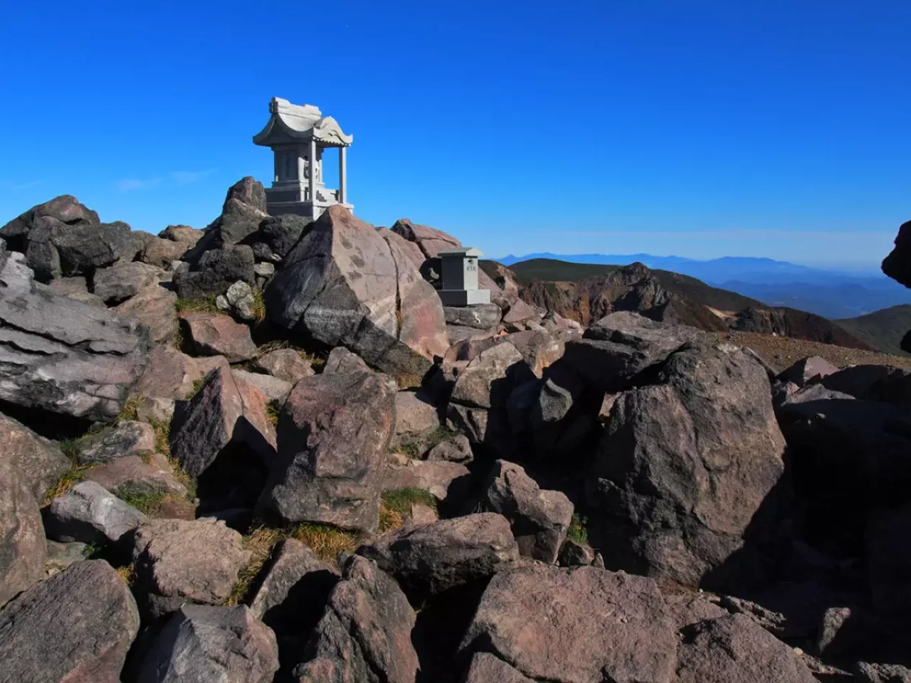 また、北側に目を向けると佐久平の街並みとその向こうに威風堂々と鎮座する浅間山が、さらには西上州の山々や南アルプスなど、360度のパノラマが広がっています。